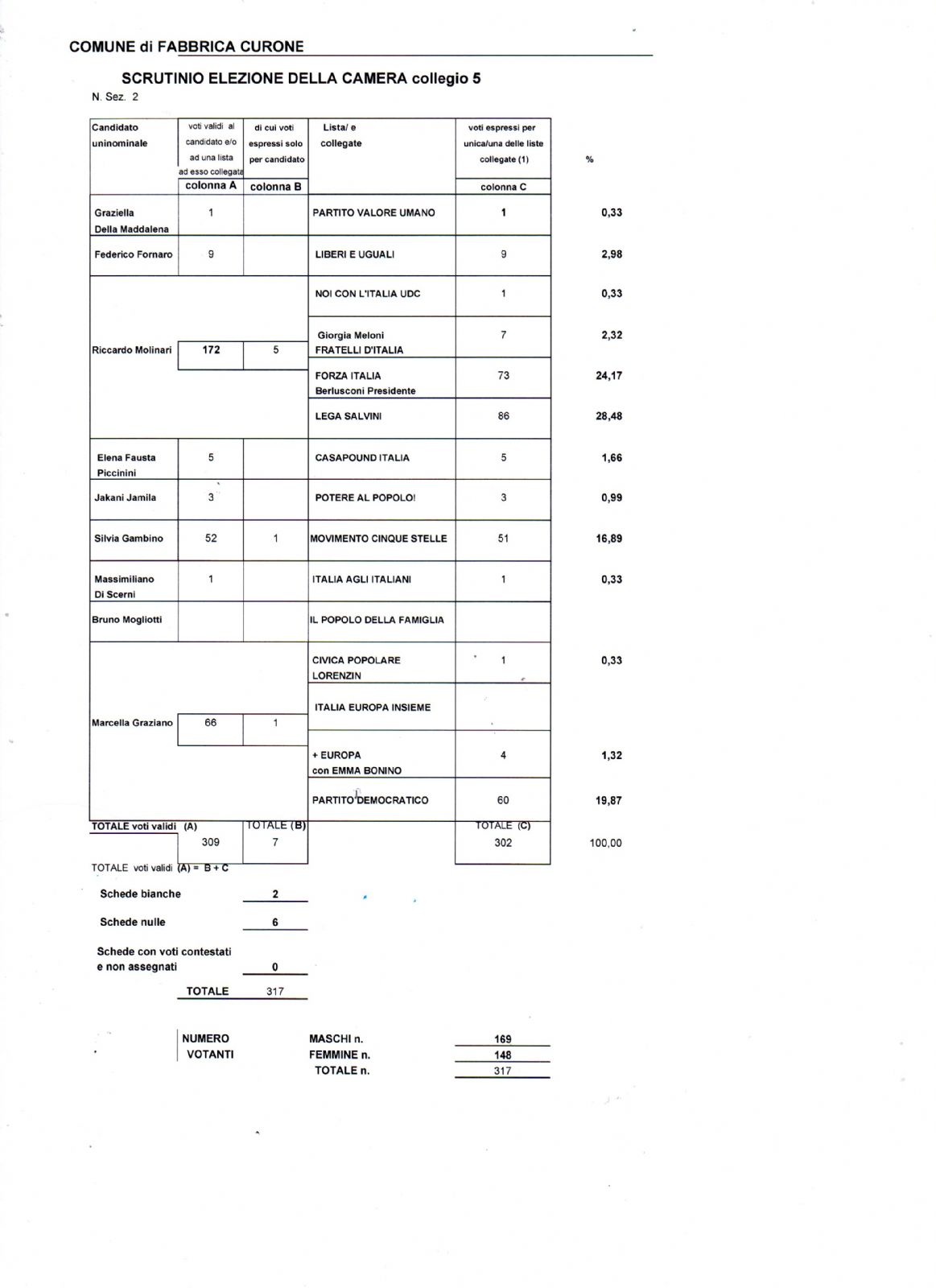 Elezioni Politiche del 04 marzo 2018: Risultati Camera