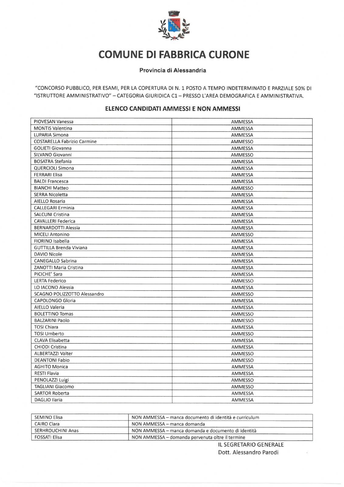 CONCORSO PUBBLICO, PER ESAMI, PER LA COPERTURA DI N. 1 POSTO A TEMPO INDETERMINATO E PARZIALE 50% DI “ISTRUTTORE AMMINISTRATIVO” – CATEGORIA GIURIDICA C1 – PRESSO L'AREA DEMOGRAFICA E AMMINISTRATIVA