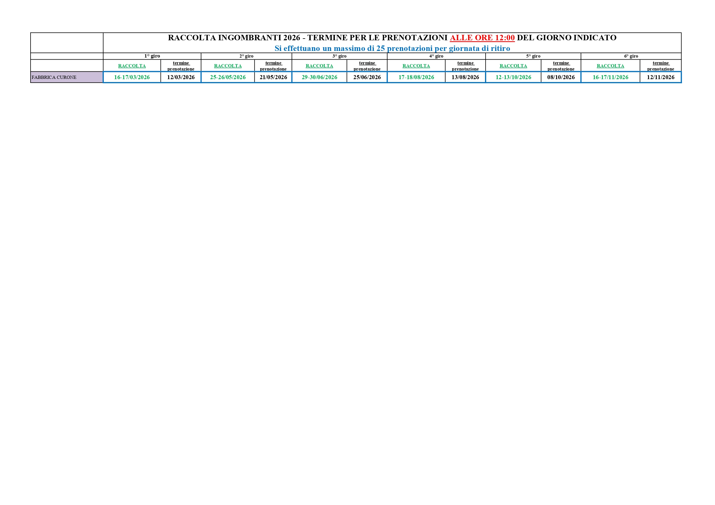 Si informano gli utenti che sarà effettuato il servizio raccolta ingombranti in cui è possibile smaltire: