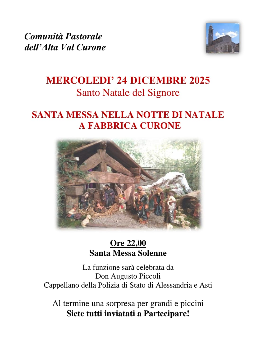 Santa Messa nella notte di Natale a fabbrica Curone
